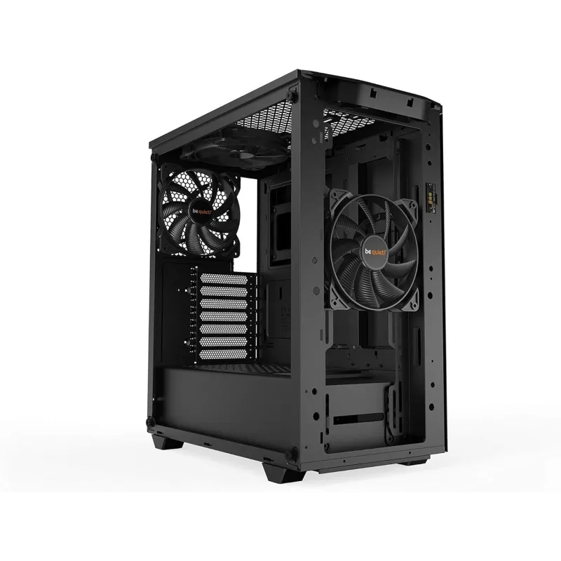 3 PURE WINGS 2 PREINSTALADOS: Funcionamiento silencioso. 3 ventiladores Pure Wings 2 preinstalados con aspas optimizadas para el flujo de aire que aseguran un flujo de aire y una refrigeración perfectos. A pesar del diseño compacto del chasis, los ventiladores en la parte frontal, superior y trasera son modelos de 140mm, lo que resulta en un funcionamiento muy silencioso. Se pueden instalar hasta dos ventiladores adicionales de 140mm.