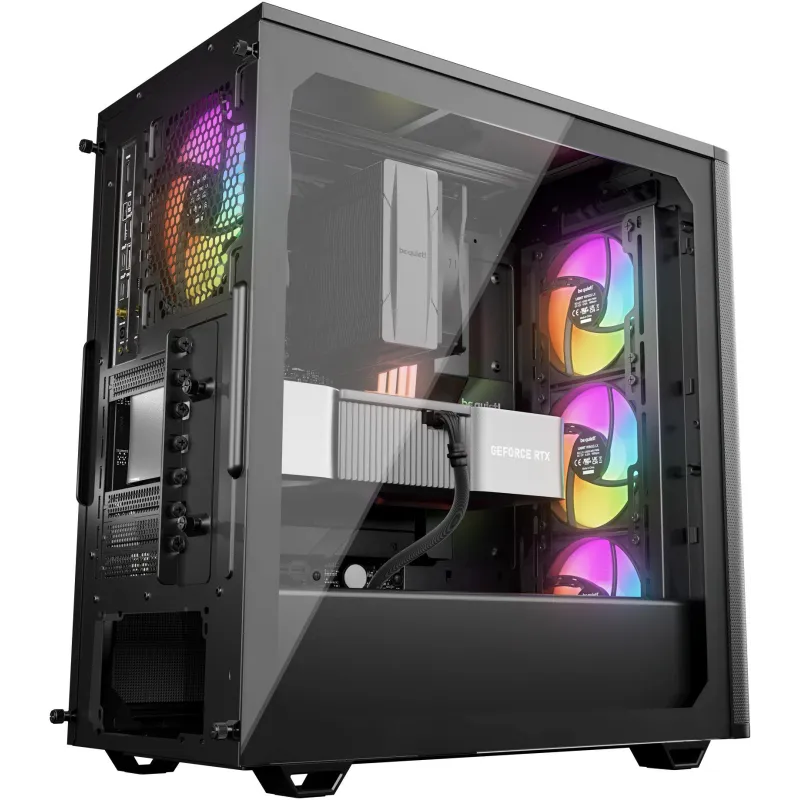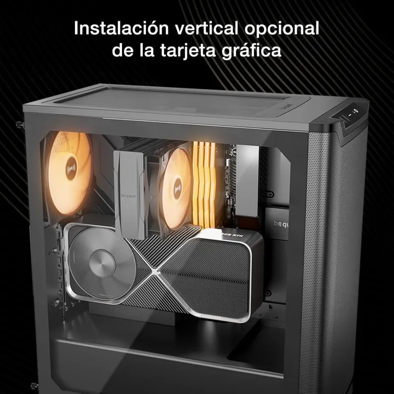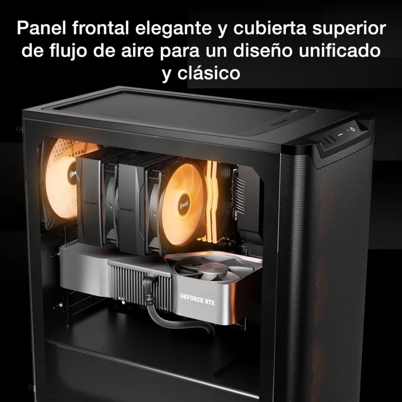 Con una ventana lateral y ventiladores con iluminación RGB multicolor, la torre Be Quiet! Pure Base 501 LX Black Negro ofrece una estética moderna y personalizable. La iluminación está integrada en los ventiladores, creando un efecto visual atractivo que puede adaptarse al estilo del usuario. Esta característica no solo mejora la apariencia del equipo, sino que también permite supervisar fácilmente el interior del sistema. El diseño sobrio en color negro y los acabados de alta calidad refuerzan su presencia en cualquier escritorio o entorno profesional.