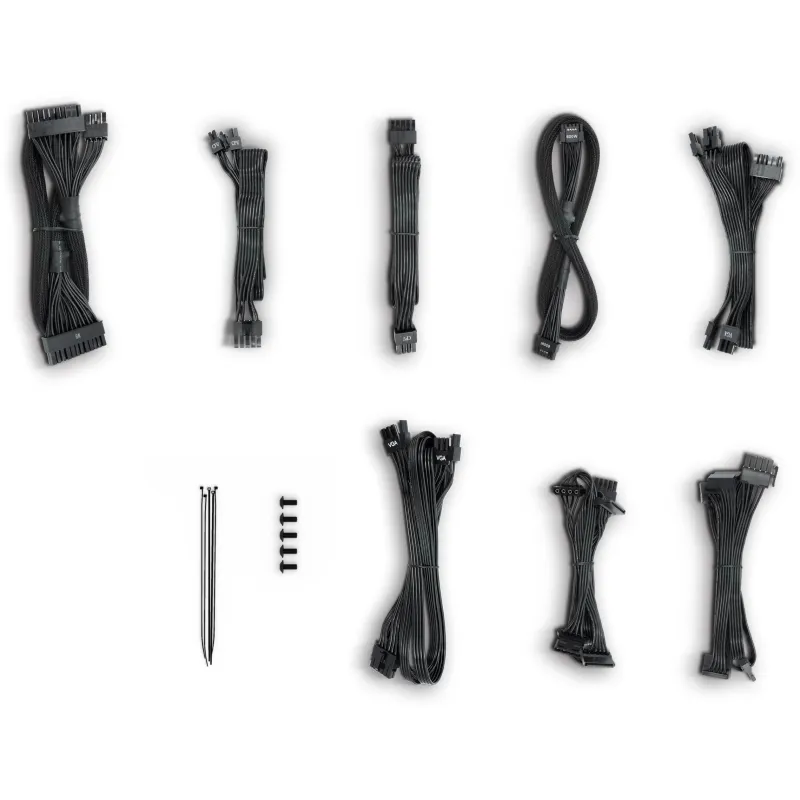 Contenido del embalaje - Cables incluidos: Corriente alterna, CPU, PCIe, Peripheral (Molex), SATA
