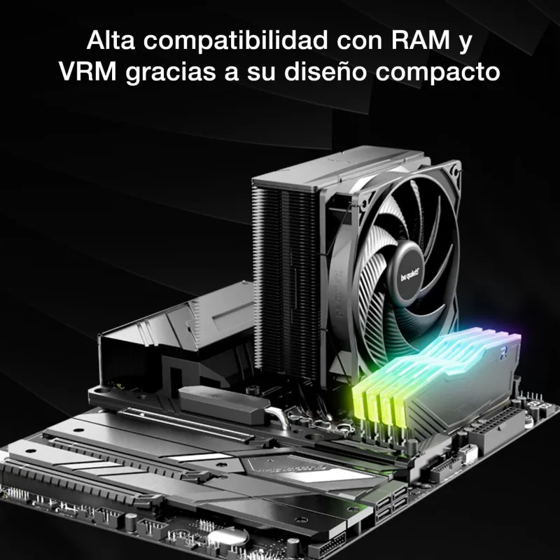El Refrigerador de aire Be Quiet! Pure Rock Slim 3 ofrece un rendimiento térmico destacado en equipos con limitaciones de espacio. Su velocidad de rotación 1700 RPM asegura un flujo de aire constante de hasta 60,3 m³/h, manteniendo el procesador en temperaturas óptimas incluso bajo carga. Gracias a su diseño compacto y a su único ventilador de 10 cm, se adapta fácilmente a sistemas pequeños sin sacrificar la eficiencia. Además, su bajo nivel de ruido, que no supera los 24,8 dB, lo convierte en una solución ideal para entornos donde el silencio es prioritario. Compatible con sockets Intel y AMD, es una opción versátil y fiable para cualquier configuración doméstica o de oficina.