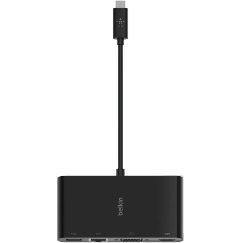 Docking Stations Belkin AVC005BTBK con USB 3.2 Gen 1 Type-C, puerto HDMI, VGA y RJ-45, compatible con Windows y Mac, diseño negro compacto