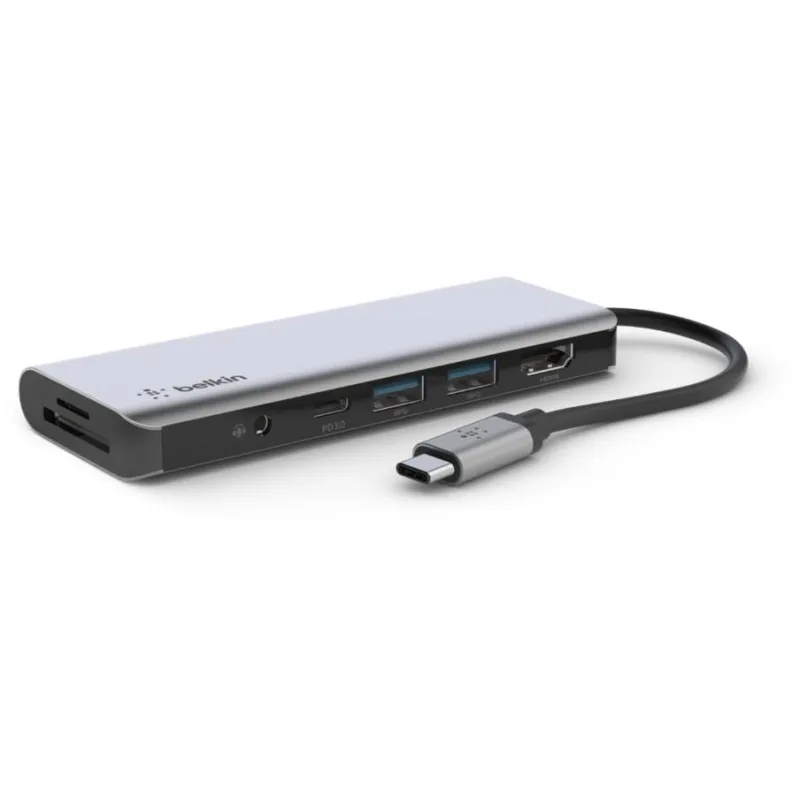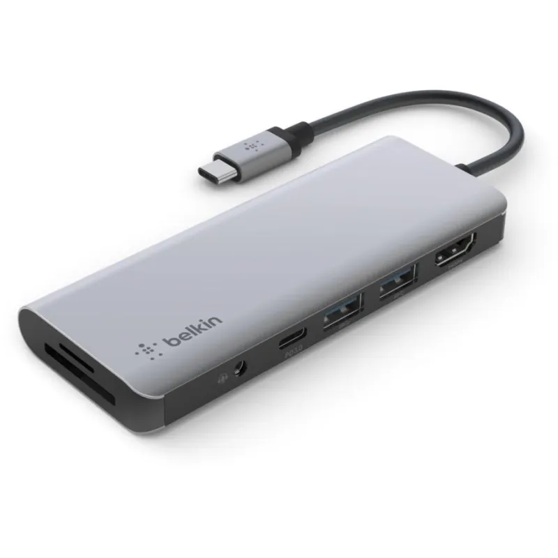 Belkin AVC009BTSGY USB-C a USB-C/USB-A/HDMI/microSD/SD Plata