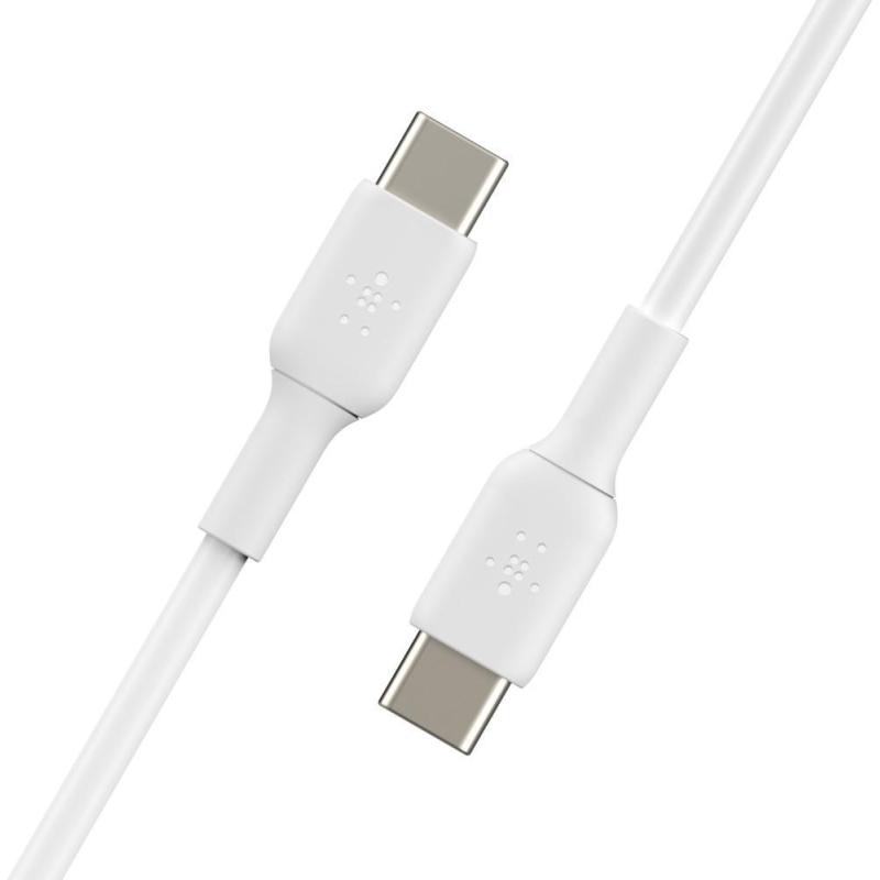 Cable USB Belkin CAB003BT1MWH con conectores USB-C macho, diseño blanco, longitud de cable 1 metro y función Plug and Play