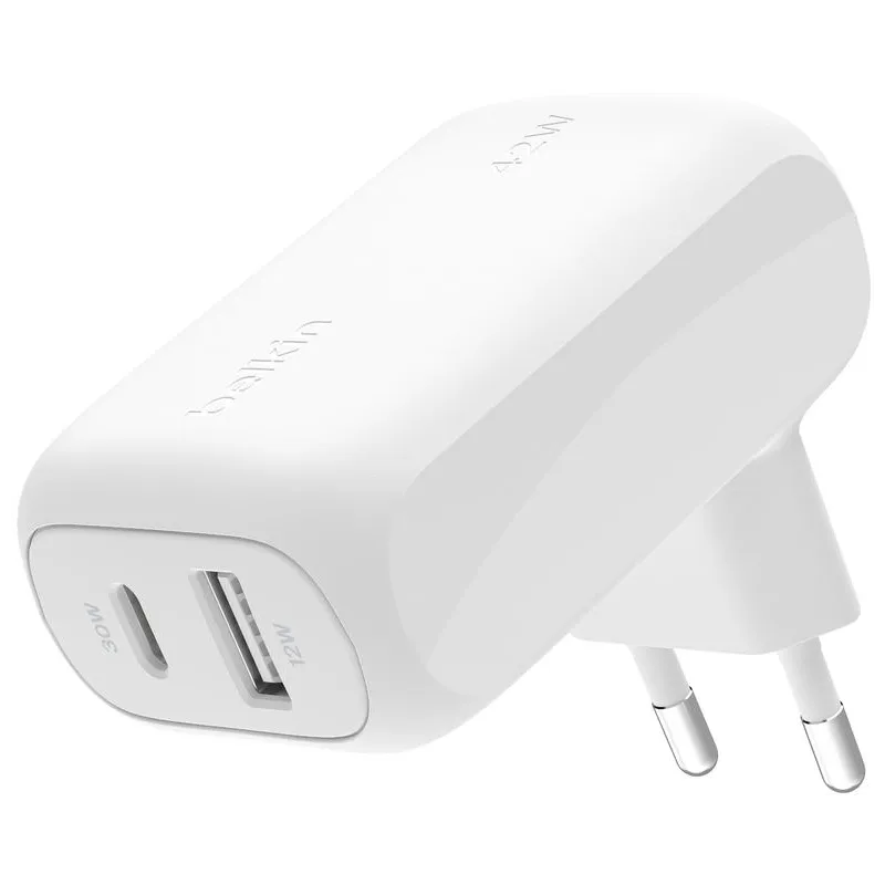DISEÑO FUNCIONAL Y CONEXIÓN SIMULTÁNEA: Con el Cargador de Móvil Belkin WCB009VFWH puedes cargar hasta dos dispositivos al mismo tiempo gracias a sus dos puertos de salida: uno de 30 W y otro de 12 W. Esta funcionalidad es perfecta para quienes necesitan mantener su smartphone y tableta operativos durante todo el día sin tener que esperar turnos de carga. Su potencia máxima de 42 W asegura que ambos dispositivos reciban suficiente energía para una carga eficiente. El puerto USB Tipo C permite una transferencia energética más rápida y estable, ideal para dispositivos modernos. Además, su diseño en blanco y su uso interior lo hacen adecuado para cualquier entorno doméstico o de oficina. Esta combinación de potencia y practicidad lo convierte en una opción imprescindible para el usuario actual.