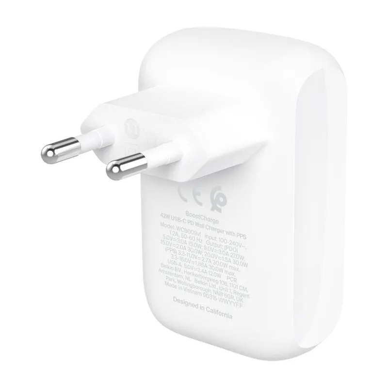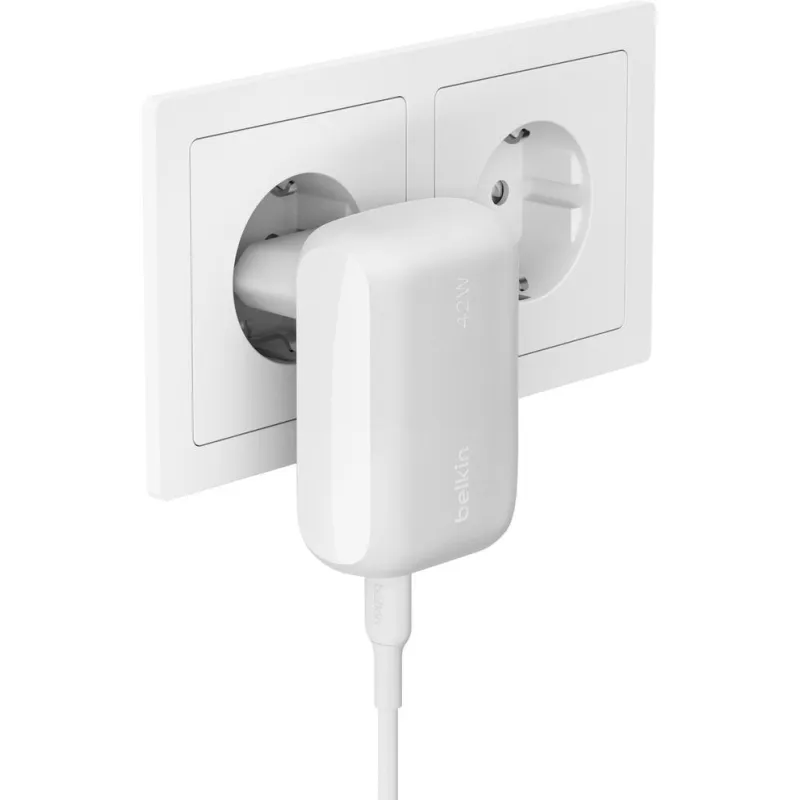Cargador de Móvil Belkin WCB009VFWH con potencia máxima 42 W, puerto USB Tipo C y carga rápida compatible con móviles, tabletas y portátiles