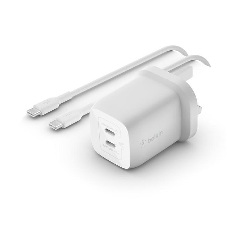 Cargador de Móvil Belkin WCH013VF2MWH-B6 con entrega de energía USB de hasta 65 W, transistores de nitruro de galio y dos puertos USB tipo C