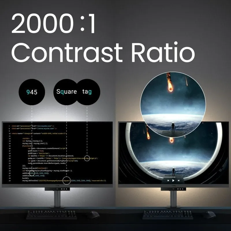 El Monitor para programación BenQ RD320 9H.LMTLA.TBE incorpora una impresionante pantalla 4K de 31,5 pulgadas que ofrece una resolución de 3840 x 2160 píxeles. Esto permite visualizar hasta el más mínimo detalle con una claridad excepcional, ideal para tareas profesionales que requieren precisión visual. Gracias a su tecnología IPS, los colores se mantienen consistentes desde cualquier ángulo, proporcionando una experiencia visual uniforme y envolvente. Esta combinación de resolución y tecnología convierte al monitor en una herramienta imprescindible para diseñadores, editores y creadores de contenido que buscan calidad sin compromisos. Además, su brillo de 400 cd/m² y compatibilidad con HDR10 y DisplayHDR 400 garantizan un contraste realista y colores más vivos en cada imagen.