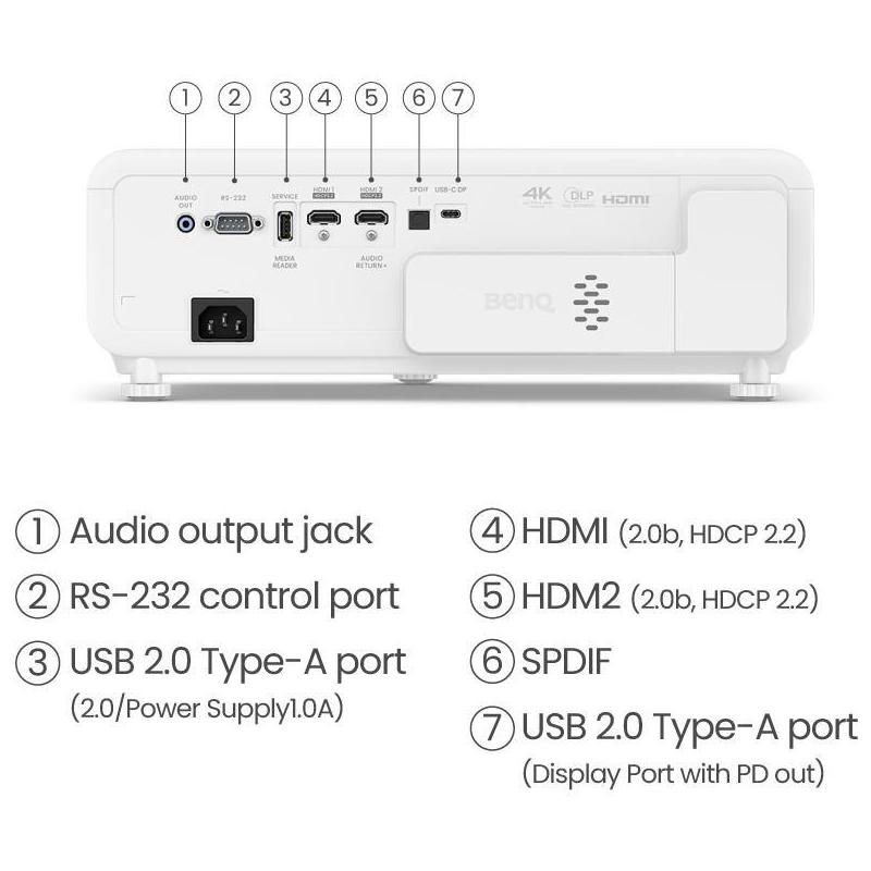 Equipado con una fuente de luz LED de larga duración, ofrece hasta 30000 horas en modo económico, garantizando un uso prolongado y eficiente. La corrección trapezoidal horizontal y vertical de ±30° facilita la instalación, permitiéndote ajustar la imagen de forma precisa.