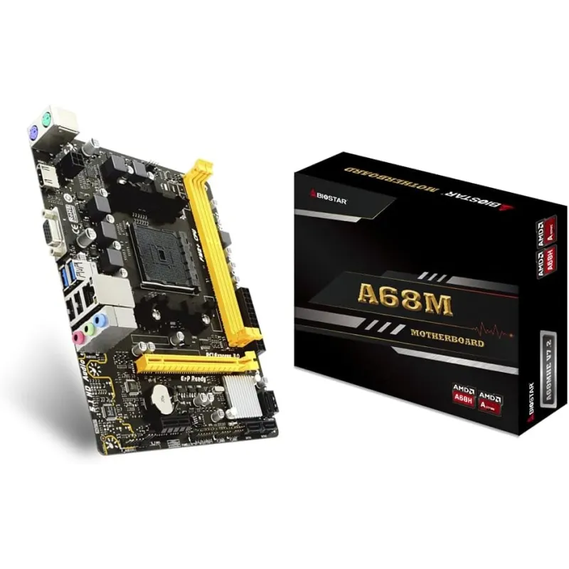 La placa base Biostar A68MHE es una solución robusta y versátil para los entusiastas de la tecnología. Con su formato micro-ATX, esta placa es perfecta para construir un sistema compacto pero potente. Equipada con el chipset AMD A68H, es compatible con los procesadores AMD FM2+ A-series APU, ofreciendo una excelente plataforma para computación y entretenimiento.