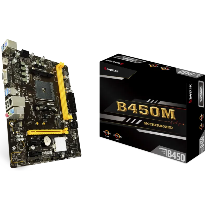 La placa base Biostar B450MH es una solución robusta y versátil para los entusiastas de la tecnología. Con su formato m-ATX, se adapta perfectamente a una amplia gama de cajas de PC, manteniendo un tamaño compacto sin sacrificar la funcionalidad. El chipset AMD B450 es el corazón de esta placa, ofreciendo compatibilidad con los procesadores AMD AM4 Socket para Ryzen de 3ª, 2ª y 1ª generación, así como con los Ryzen de 2ª y 1ª generación con gráficos Radeon Vega y Athlon con procesadores gráficos Radeon Vega.