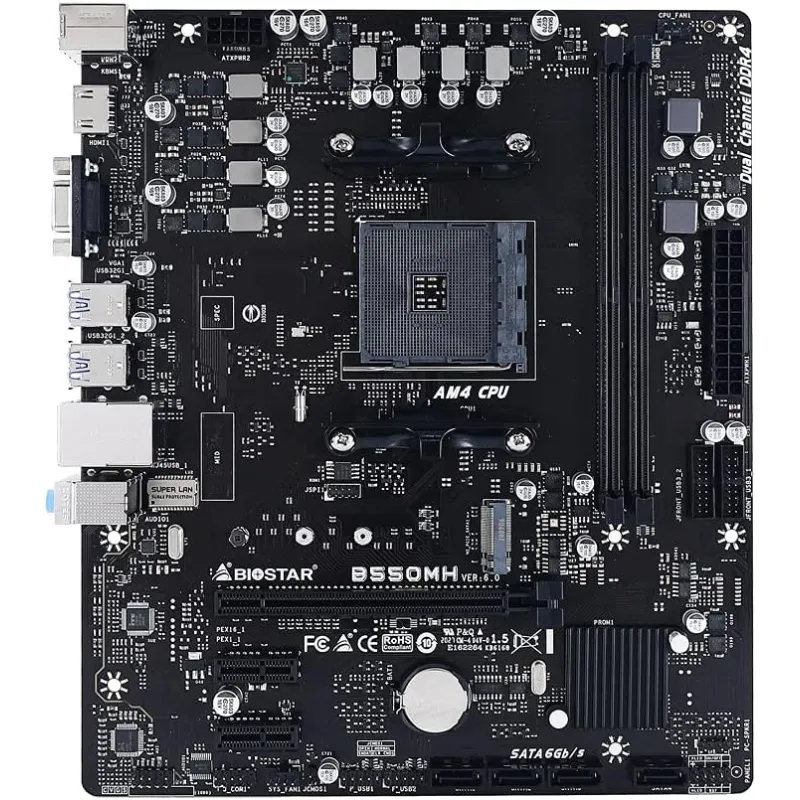 La placa base B550MH es una solución compacta y potente para los entusiastas de la tecnología. Con su formato m-ATX, se adapta perfectamente a una amplia gama de cajas de ordenador, manteniendo un tamaño conveniente sin sacrificar la funcionalidad. Equipada con el chipset AMD B550, esta placa es compatible con los procesadores AMD Ryzen de 3ª generación y está preparada para futuras actualizaciones con soporte para procesadores que aún no han llegado al mercado.
