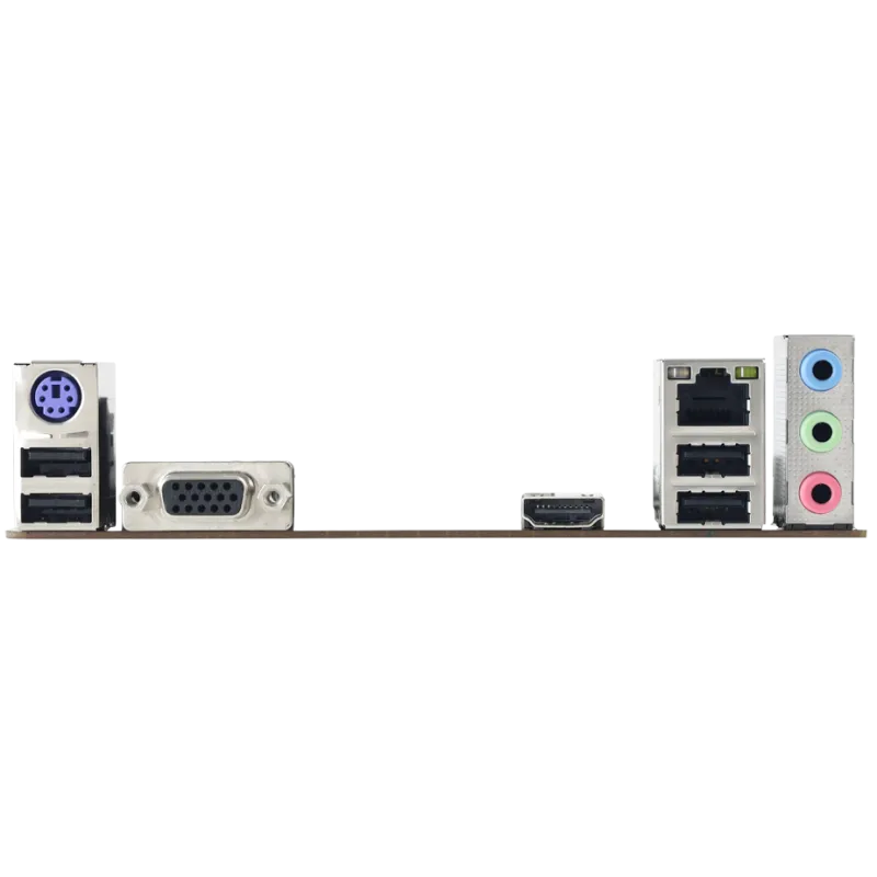 La expansión es una brisa con 1 slot PCIe 3.0 x16 y 1 slot PCIe 2.0 x1, permitiendo la instalación de tarjetas gráficas de alto rendimiento y otros componentes. Los puertos E/S traseros incluyen 1 puerto VGA, 1 puerto HDMI para conectividad de video, y 4 puertos USB 2.0, junto con 1 puerto LAN y 3 jacks de audio para una experiencia de sonido envolvente 7.1.
