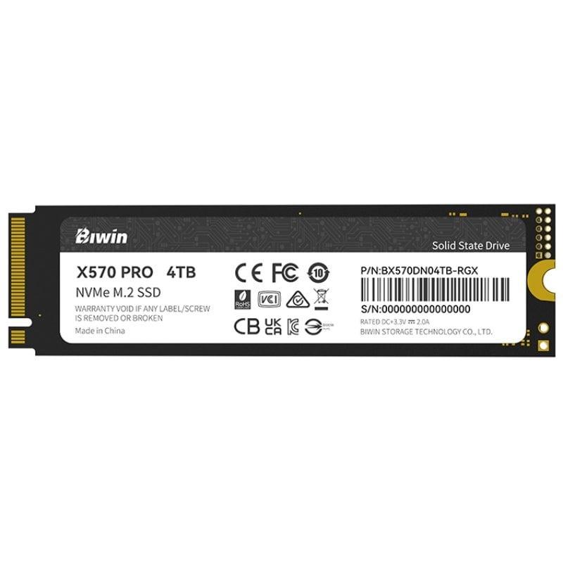 Disco Duro SSD Biwin Black Opal X570 PRO de 4TB con alta velocidad de lectura (14,000 MB/s) y escritura (13,000 MB/s)