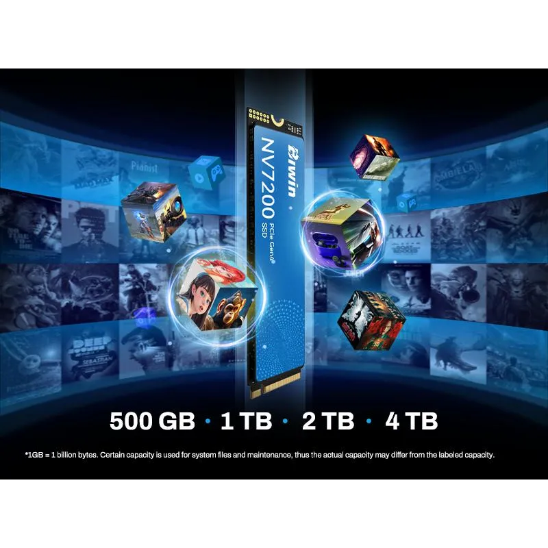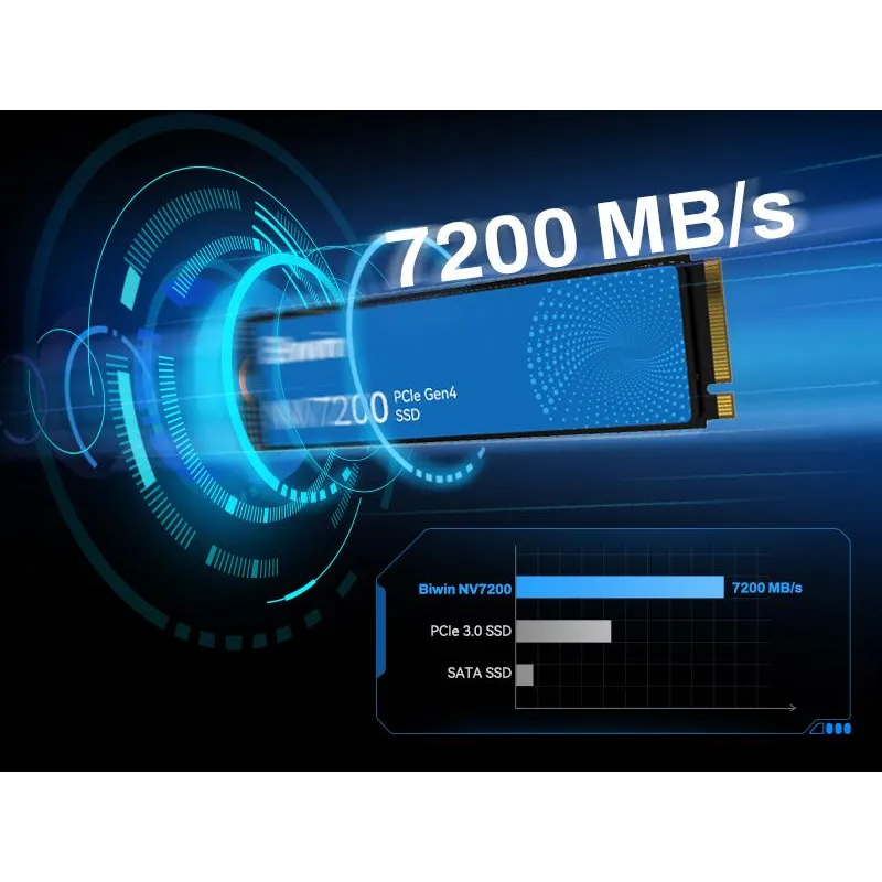 Disco Duro SSD Biwin BNV720002TB-RGX con velocidad de lectura 7200 MB/s, conexión PCIe Gen4×4 y formato M.2 2280