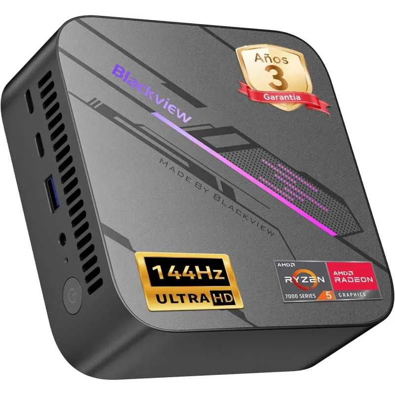 Mini PC Blackview MP100 Ryzen 5 7430U con Wi?Fi 6: compacto para teletrabajo, triple pantalla 4K y Windows 11 Pro de serie. Montaje VESA, listo.