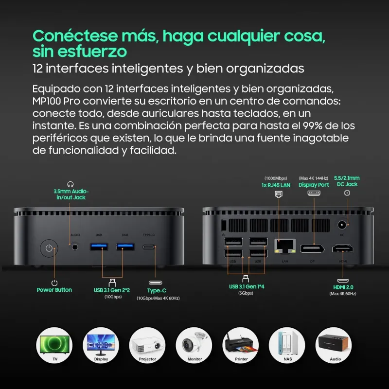 Este Blackview MP100 Pro es un mini PC con Windows 11 Pro pensado para escritorio real: poco espacio, varias pantallas y trabajo diario sin líos de torre.
