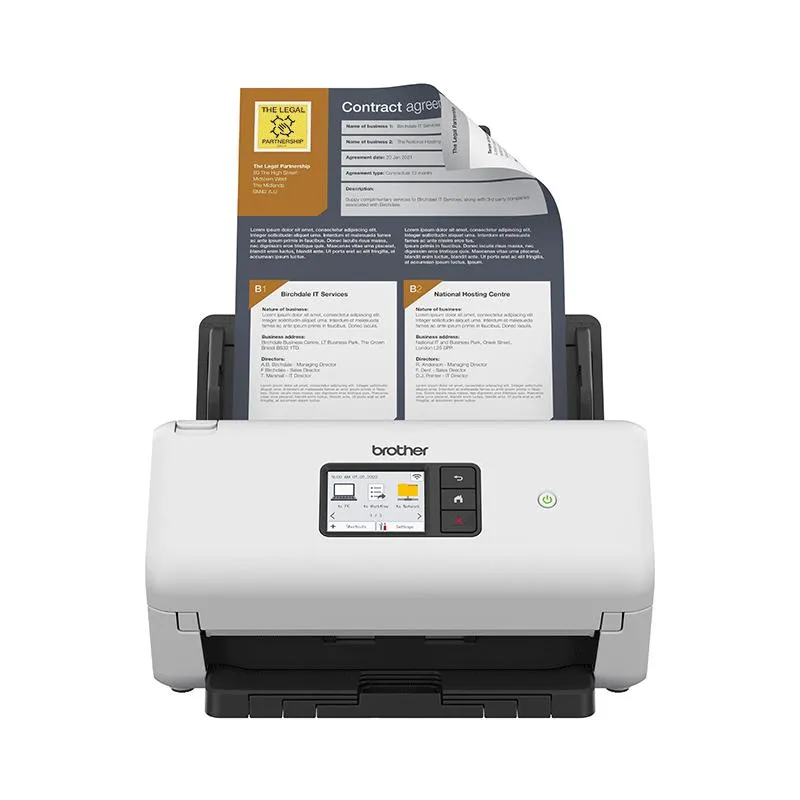 El Escáner Brother ADS-4550W está equipado con una pantalla táctil 2.8 pulgadas a color que simplifica el uso del dispositivo. Esta interfaz permite acceder rápidamente a las funciones de escaneo, configurar perfiles personalizados y enviar documentos a múltiples destinos con solo unos toques. La experiencia de usuario es fluida y accesible, incluso para quienes no están familiarizados con tecnología avanzada. Gracias a esta pantalla, el escáner se convierte en una herramienta intuitiva que mejora la eficiencia operativa. Combinado con su conectividad por Wi-Fi, Ethernet y Wi-Fi Direct, el Escáner Brother ADS-4550W se integra perfectamente en cualquier entorno de red. Además, su compatibilidad con sistemas operativos Windows, Mac y Linux garantiza una implementación sin complicaciones. Esta combinación de facilidad de uso y conectividad avanzada lo convierte en un dispositivo imprescindible para oficinas modernas.