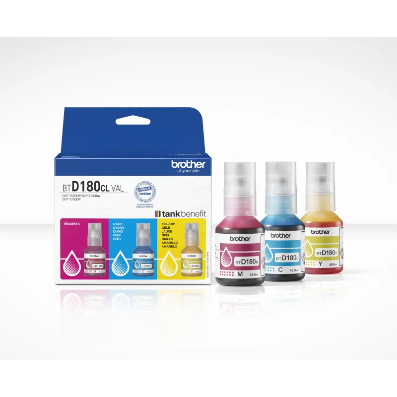 Botellas de Tinta Brother BTD180CLVAL, con rendimiento de impresión de 5000 páginas, compatible con impresoras Brother como la DCP-T580DW