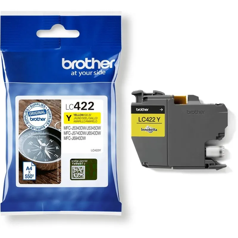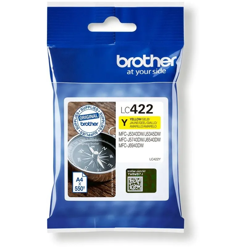 Los consumibles originales Brother están diseñados para trabajar con nuestros equipos y ofrecer un rendimiento óptimo. Juntos, son la combinación perfecta. Cartucho de tinta original Brother LC422Y: Compensa en todo momento.