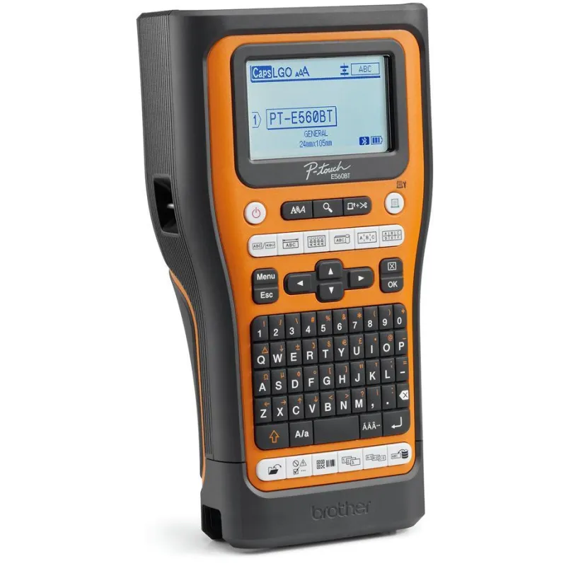 DISEÑO FÁCIL DE USAR: Con un teclado QWERTY integrado, una gran pantalla retroiluminada con vista previa de impresión y funciones de etiquetado específicas al alcance de la mano, la rotuladora PT-E560BT imprime etiquetas de hasta 24mm de ancho simplificando la creación e impresión de etiquetas, aumentando la productividad in situ.