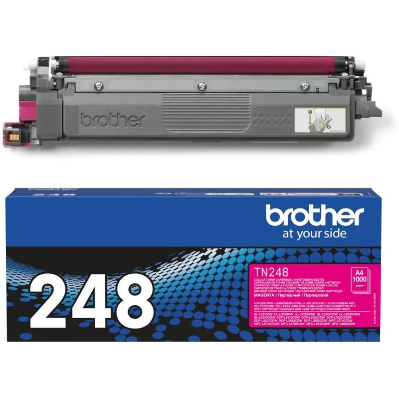 Con el tóner original magenta TN248M de duración estándar de 1.000 páginas*, tendrás impresiones a color de alta calidad. Con el sistema de consumibles independientes, 4 cartuchos de tóner y tambor, solamente tendrás que cambiar el consumible que se haya agotado. Además, disfruta de una gestión más eficiente del tóner con la función ahorro de tóner y el modo bk, que permite seguir trabajando en monocromo si se agota alguno de los tóneres de color, hasta que se agote el tóner negro.