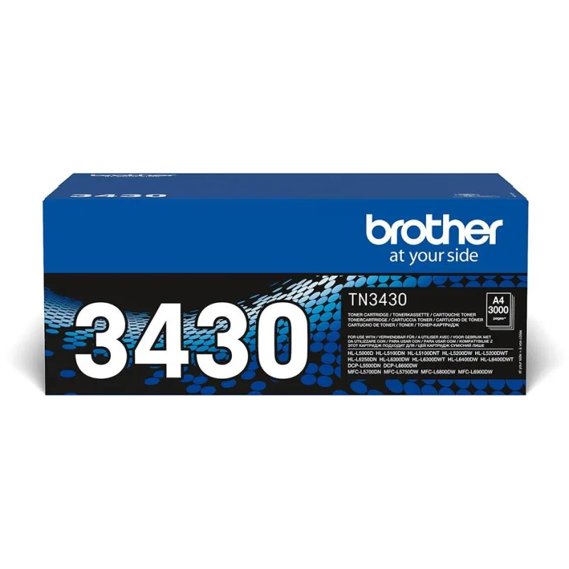 El tóner original TN3430, con una duración de 3.000 págs*, es la solución ideal si tu volumen de impresión no es muy alto, o bien prefieres realizar un menor desembolso en la compra del consumible.