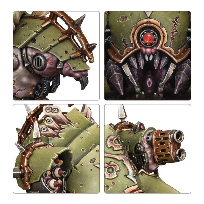 La miniatura representa uno de los vehículos más característicos de Nurgle, con blindaje corroído, armamento pesado y muchas superficies pensadas para lucir óxidos, podredumbre y efectos de peste, ideal tanto para juego como para pintores que disfrutan trabajando texturas.