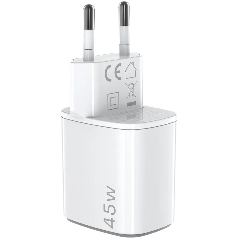 Con un diseño compacto y elegante en color blanco, el Celly Gan UPTC2USBC45WWH combina funcionalidad y estilo. Fabricado con carcasa de plástico resistente, incorpora transistores de nitruro de galio (GaN), que permiten una mayor eficiencia energética y un tamaño más reducido. Su voltaje de entrada de 100 - 240 V y frecuencia de 50 - 60 Hz lo hacen ideal para viajar, ya que se adapta a diferentes estándares eléctricos internacionales. El principio de funcionamiento por contacto garantiza una conexión estable y segura. Este cargador no solo destaca por su rendimiento, sino también por su capacidad de adaptarse a las exigencias tecnológicas actuales, haciendo de la tecnología de carga GaN y los puertos USB Tipo C características clave para una experiencia superior.