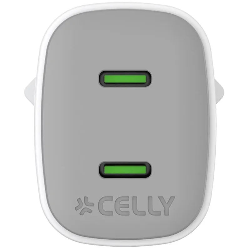 Cargador de Móvil Celly Gan UPTC2USBC45WWH con tecnología de carga GaN, dos puertos USB Tipo C y potencia de hasta 45 W por puerto