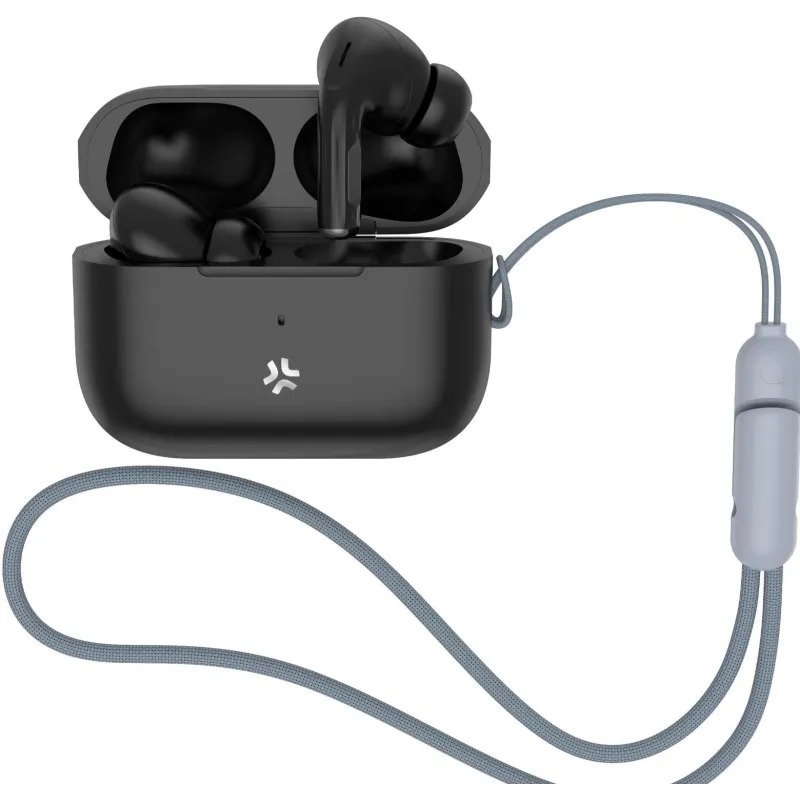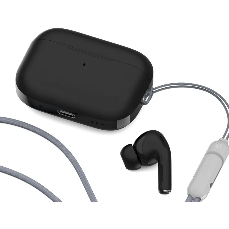 Los micrófonos integrados en ambos auriculares te permiten utilizar uno solo para atender llamadas. El cordón atado a la caja de carga los hace prácticos para seguirte a todas partes.