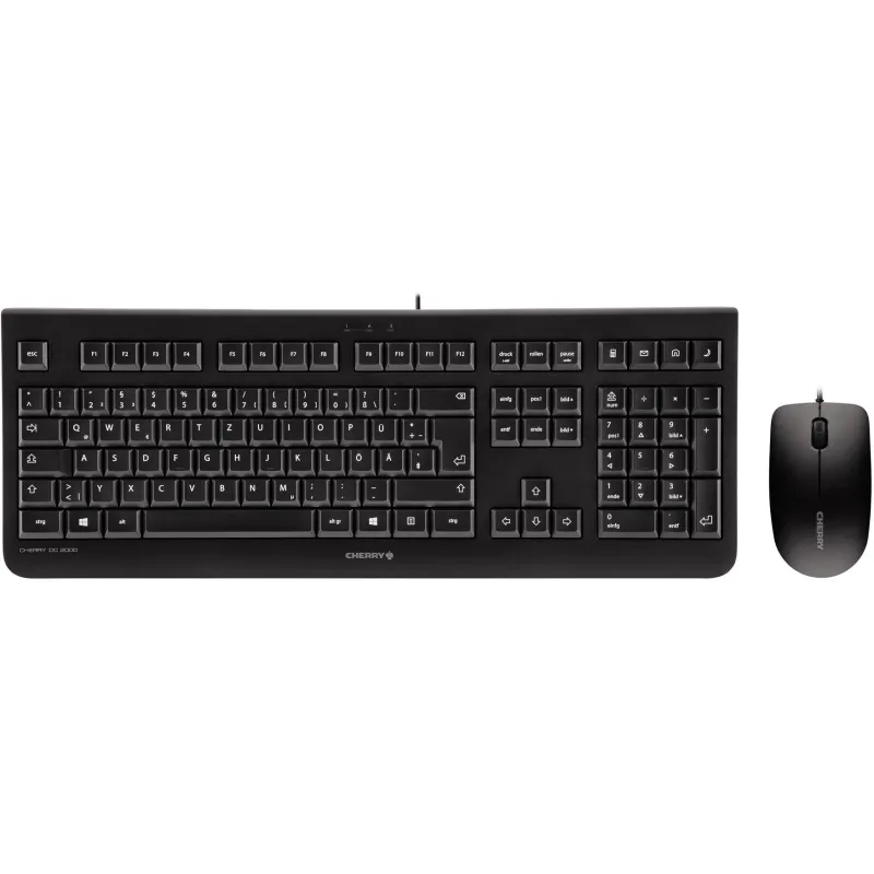 Kit de Teclado y Ratón Cherry JD-0800ES-2 DC2000, Teclado QWERTY con Teclado Numérico, Ratón Óptico 1.200DPI, Color Negro