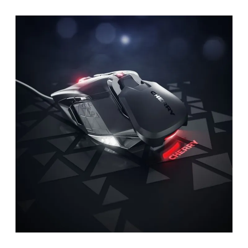 RATÓN ERGONÓMICO PARA GAMING CON HARDWARE DE PRIMERA CALIDAD: EL CHERRY MC 9620 FPS es el ratón para gaming definitivo para sus necesidades individuales. Con sus nueve botones configurables, su sensor óptico PixArt con una resolución de hasta 12 000 ppp y su iluminación RGB con más de 16 millones de colores, es ideal para cualquier apasionado de los juegos. El ratón ergonómico para gaming incluye tres pesas de 5 gramos insertables y cuenta con una superficie de apoyo desplegable en cinco niveles, por lo que se adapta al tamaño de su mano y a su posición más cómoda. Con independencia del tiempo y la intensidad de la partida, con el CHERRY MC 9620 FPS durará más que nadie. ¡Mejore su nivel de juego!