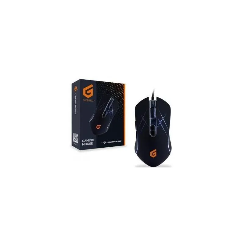Ratón Conceptronic DJEBBEL Gaming, con 3200 de DPI, iluminación RGBM, 7 Botones, Color Negro