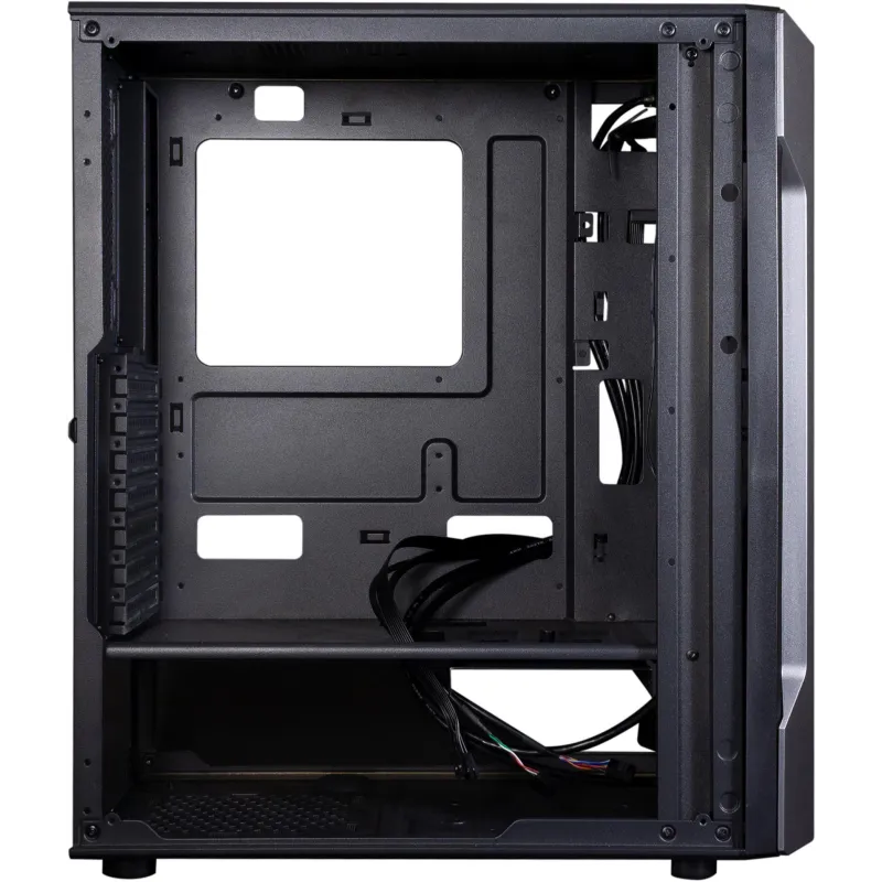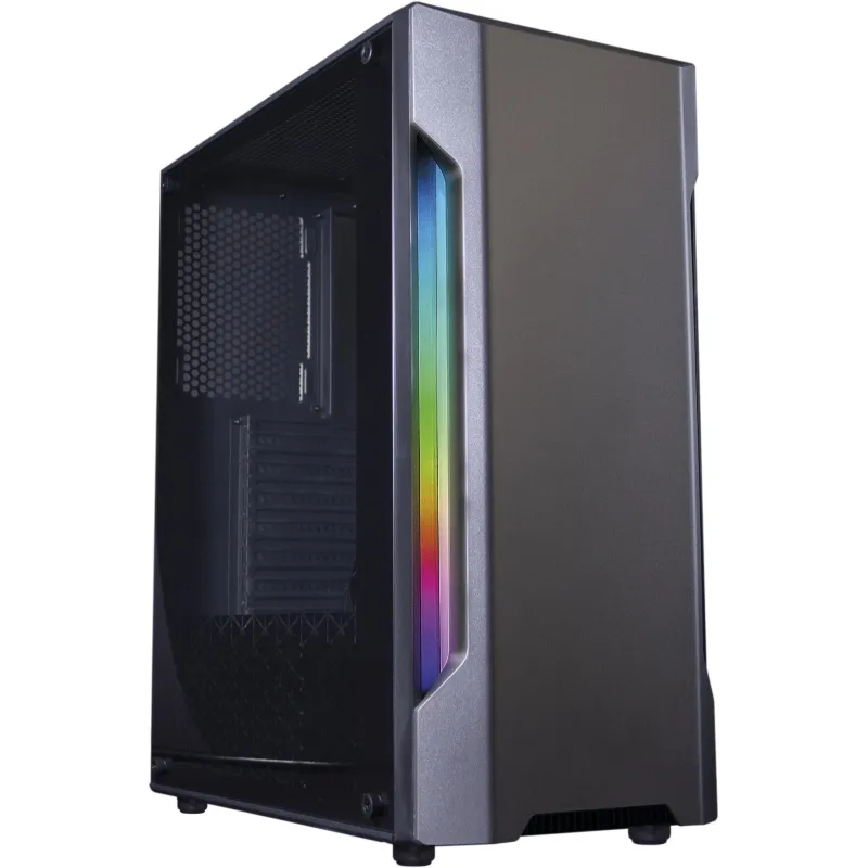 Descubre el equilibrio perfecto entre estilo y funcionalidad con nuestro nuevo chasis para PC de escritorio. Con un diseño en materiales ABS y SPCC, este elegante gabinete en colores negro y transparente está pensado para los entusiastas del juego. Su ventana lateral y el panel de vidrio templado permiten admirar los componentes internos, mientras que la iluminación RGB en la parte frontal, disponible en azul, verde y rojo, añade un toque de dinamismo.
