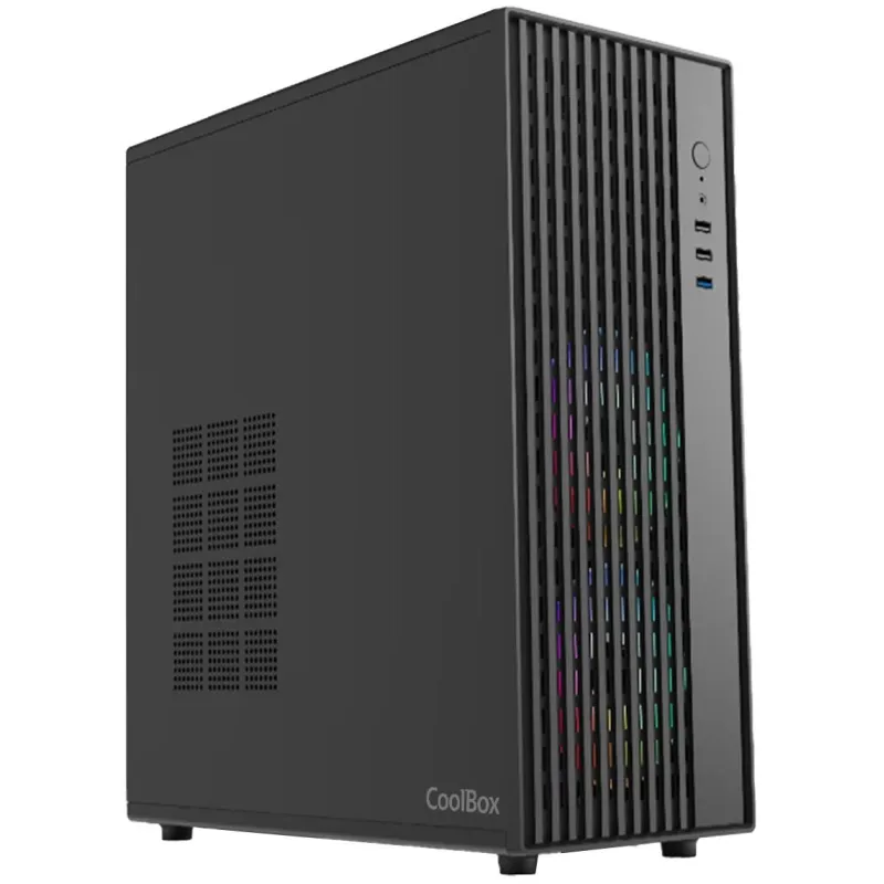 Torre Coolbox es una solución versátil y funcional diseñada para quienes buscan un equilibrio entre rendimiento y estética en su equipo de sobremesa. Su estructura de material SPCC y formato Midi Tower ofrece una base robusta y duradera. Este chasis es compatible con placas base ATX, micro ATX y Micro-ITX, lo que permite una gran flexibilidad a la hora de montar diferentes configuraciones. Cuenta con una bahía de 3,5 pulgadas y dos bahías 2.5 pulgadas que facilitan la instalación de discos duros y SSDs, permitiendo una capacidad de almacenamiento optimizada. Además, su diseño incluye siete ranuras de expansión y un sistema de refrigeración eficiente, ideal para mantener el rendimiento térmico en entornos exigentes. La torre Coolbox admite tarjetas gráficas de hasta 33 cm y disipadores de CPU de hasta 15 cm, lo que la convierte en una opción ideal tanto para el hogar como para oficinas que requieran equipos fiables y bien ventilados.