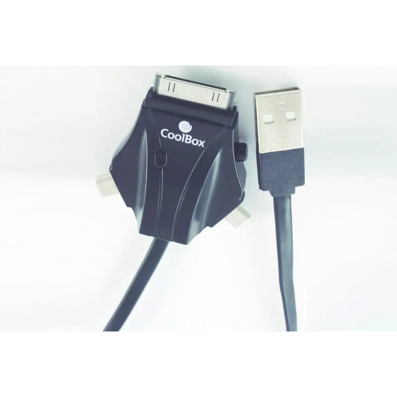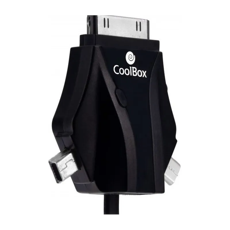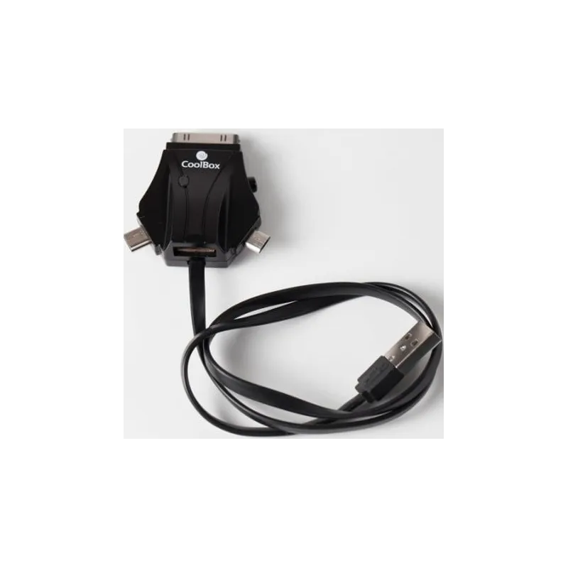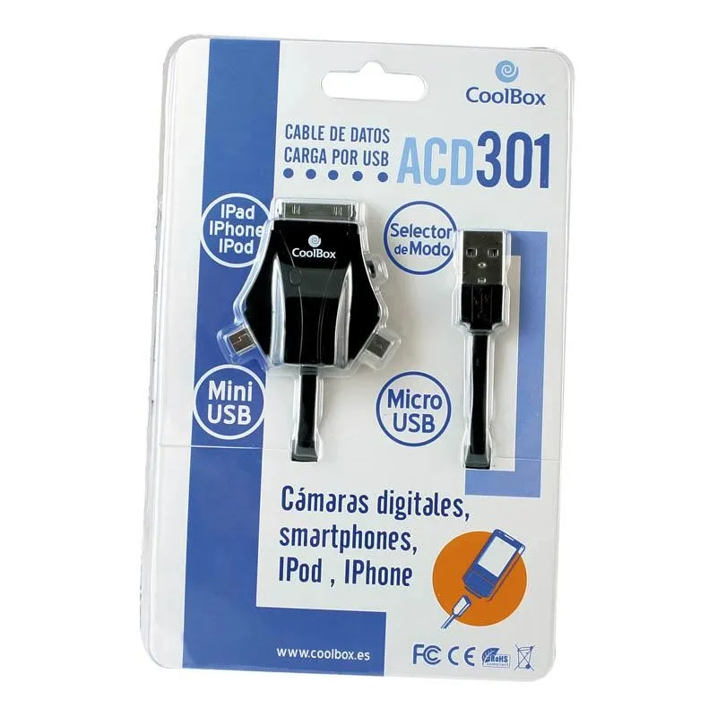 - CoolBox ACD 301. Longitud de cable: 1 m, Conector 1: USB, Conector 2: microUSB/miniUSB/Apple.
