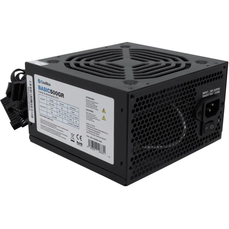 Fuente de Alimentación CoolBox BASIC 500GR Potencia de 500W Formato ATX No Modular Sin Certificaciones Color Negro