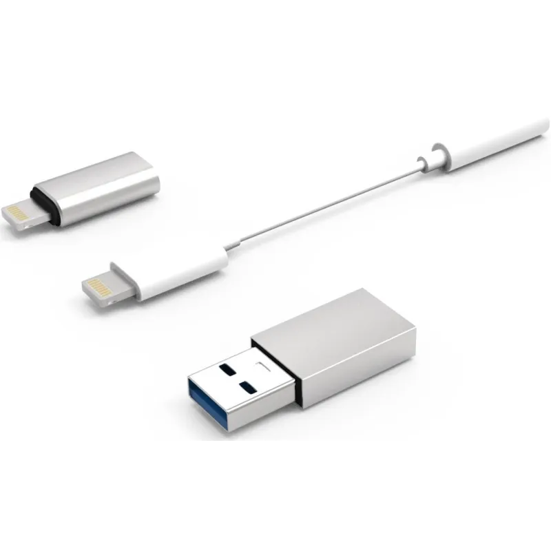 Jack 3.5mm Hembra a Lightning Macho / Lightning Macho a USB-C Hembra / USB-C Hembra a USB-A Macho