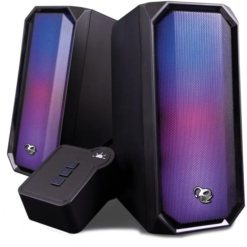Sumérgete en el juego y completa tu setup gaming con los altavoces R205 con 6 modos de iluminación RGB (uno de los modos reacciona al sonido). Con un sonido potente (6W RMS), nítido y sin distorsión, animarás tus partidas o fiestas mientras escuchas tu música favorita.