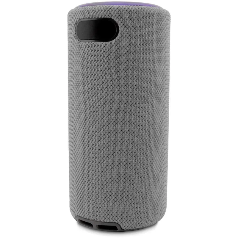 El altavoz ofrece un sonido potente y nítido con una potencia de 2 x 7W RMS, abarcando un rango de frecuencia de 80Hz a 18kHz para una experiencia auditiva envolvente. La batería interna de 1800mAh proporciona hasta 8 horas de reproducción continua, lo que junto su tamaño compacto y ligereza lo convierten en un acompañante ideal para tus escapadas.