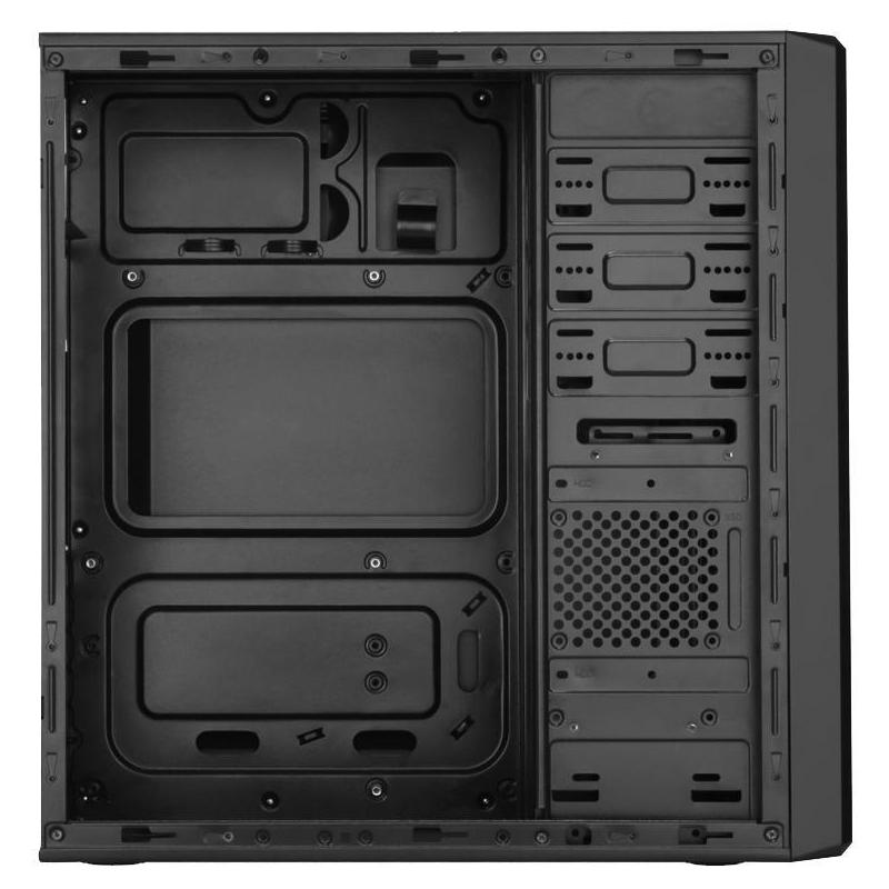 Este PC de color negro presenta un diseño robusto y versátil, compatible con formas de factor de tarjeta madre ATX. Posee un puerto 3.5", tres puertos 5.25", una bahía 2.5" y dos bahías internas de 3.5", ofreciendo diversas opciones de almacenamiento. Además, cuenta con seis ranuras de expansión para personalizar y ampliar tu configuración.