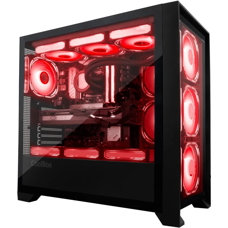 REFRIGERACIÓN AVANZADA CON VENTILADORES 120 MM: La Torre Coolbox GE2000 DualView viene equipada con un sistema de ventilación de alto rendimiento que incluye ventiladores 120 mm preinstalados en la parte frontal y trasera. Esta configuración no solo mejora el flujo de aire, sino que también permite añadir hasta nueve ventiladores adicionales en diferentes posiciones, incluyendo la parte superior, lateral e inferior. Gracias a esta capacidad de expansión, se asegura una refrigeración eficiente incluso en entornos de juego exigentes o configuraciones de alto rendimiento. Además, su compatibilidad con refrigeración líquida, incluyendo radiadores de hasta 360 mm, permite mantener temperaturas óptimas en todo momento. Esta torre está diseñada para quienes buscan estabilidad térmica sin renunciar al estilo ni al silencio.
