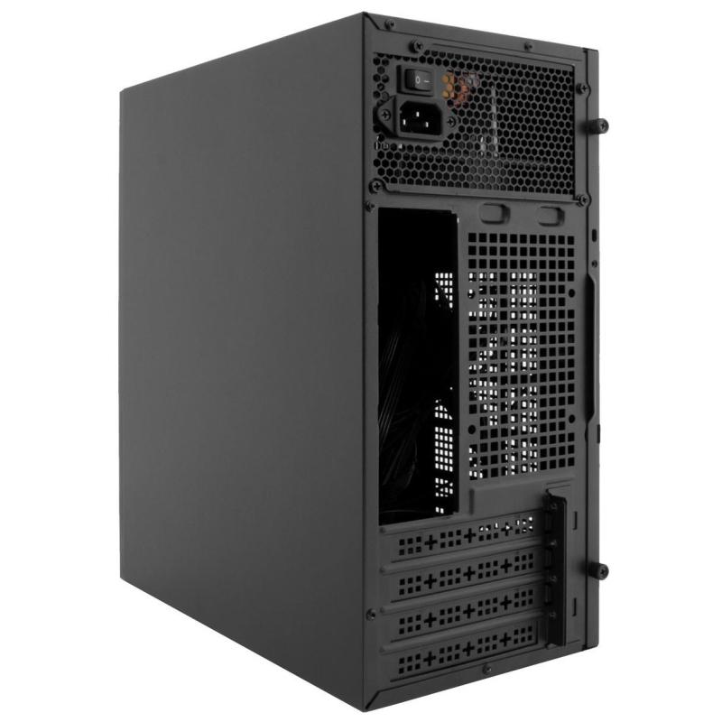 En términos de conectividad, el chasis incluye 2 puertos USB 3.0 y 1 puerto USB 2.0, así como un conector combo para HD-Audio, lo que permite una fácil conexión de periféricos y dispositivos de audio. El sistema de refrigeración soporta la instalación de un ventilador trasero de 90 mm (no incluido) y cuenta con una rejilla lateral para mejorar el flujo de aire. Además, admite coolers de CPU de hasta 130 mm de altura y fuentes de alimentación ATX de hasta 250 mm de longitud (no incluida).