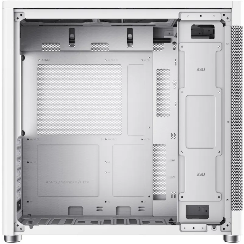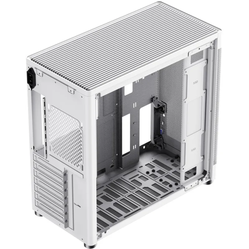 EFICIENCIA ENERGÉTICA Y FLEXIBILIDAD: El diseño contempla la ubicación de la fuente de alimentación en el fondo, lo que maximiza la eficiencia del flujo de aire. Aunque no incluye una fuente de alimentación, permite al usuario escoger aquella que mejor se adapte a sus necesidades específicas, asegurando así una personalización completa del sistema energético.
