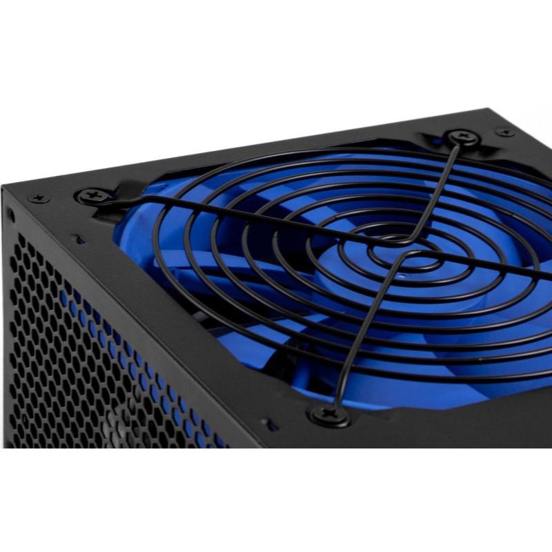 Equipada con un ventilador de 12 cm y enfriamiento activo, mantiene una temperatura óptima durante su funcionamiento. Además, su iluminación azul añade un toque estético atractivo.