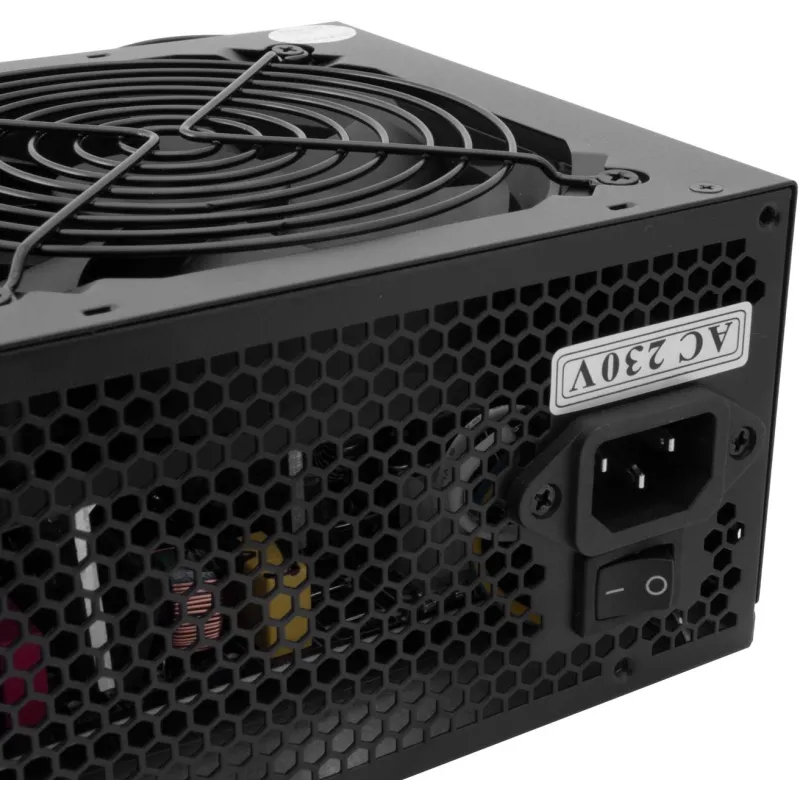 Diseñada para compatibilidad con tarjetas madre ATX y con un factor de forma ATX, es perfecta para PC de alto rendimiento. Su diseño incluye un ventilador de 12 cm con enfriamiento activo y un interruptor de encendido/apagado integrado para un control y disipación de calor eficientes. El producto es robusto y duradero, con un tiempo medio entre fallos de 60000 horas y un intervalo de temperatura operativa de -10 a 35 °C.