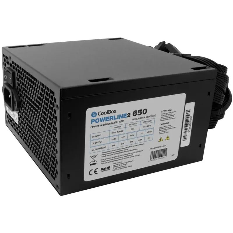 En formato ATX, diseñadas conforme a la especificación Intel ATX12V v2.31, y disponibles en versiones de diferentes potencias, las fuentes CoolBox PowerLine Black destacan por su calidad, fiabilidad y eficiencia del 85% (al 50% de carga).