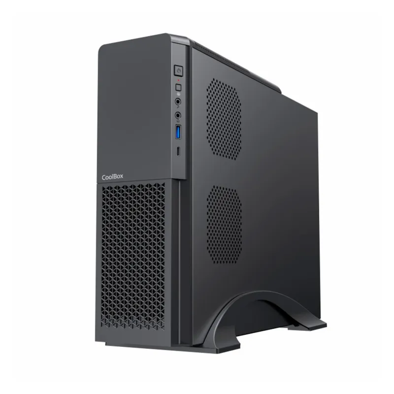 Torre CoolBox Slim T313 COO-PCT313-BZ con formato micro ATX, fuente de alimentación 500 W incluida, diseño compacto en negro y puertos USB 3.2 tipo A y C