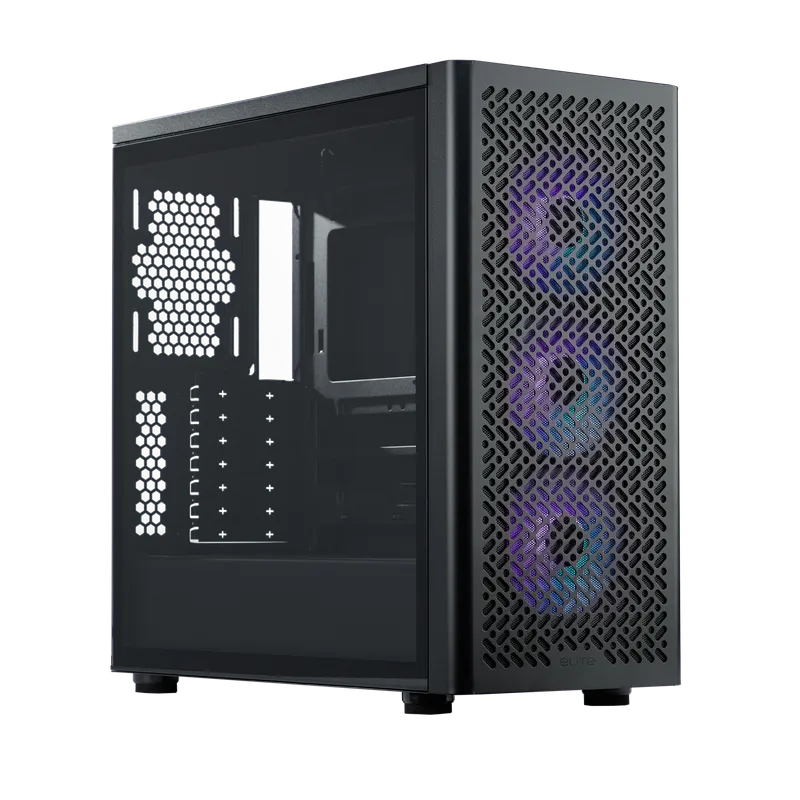 Gracias a sus ventiladores frontales 120 mm preinstalados, la Torre Cooler Master Elite 502 Black asegura un flujo de aire constante y eficiente desde el primer momento. Además, admite hasta tres ventiladores en la parte superior y uno trasero, lo que permite personalizar la refrigeración según las necesidades del usuario. Es compatible con radiadores de hasta 420 mm en el frontal y 360 mm en la parte superior, lo que la convierte en una opción ideal para sistemas de refrigeración líquida. Esta torre está pensada para mantener temperaturas óptimas incluso bajo cargas intensas, lo que la hace perfecta para gaming o tareas exigentes. La iluminación multicolor integrada en los ventiladores añade un toque visual atractivo sin comprometer el rendimiento. La Torre Cooler Master Elite 502 Black combina estética y funcionalidad en un solo chasis.