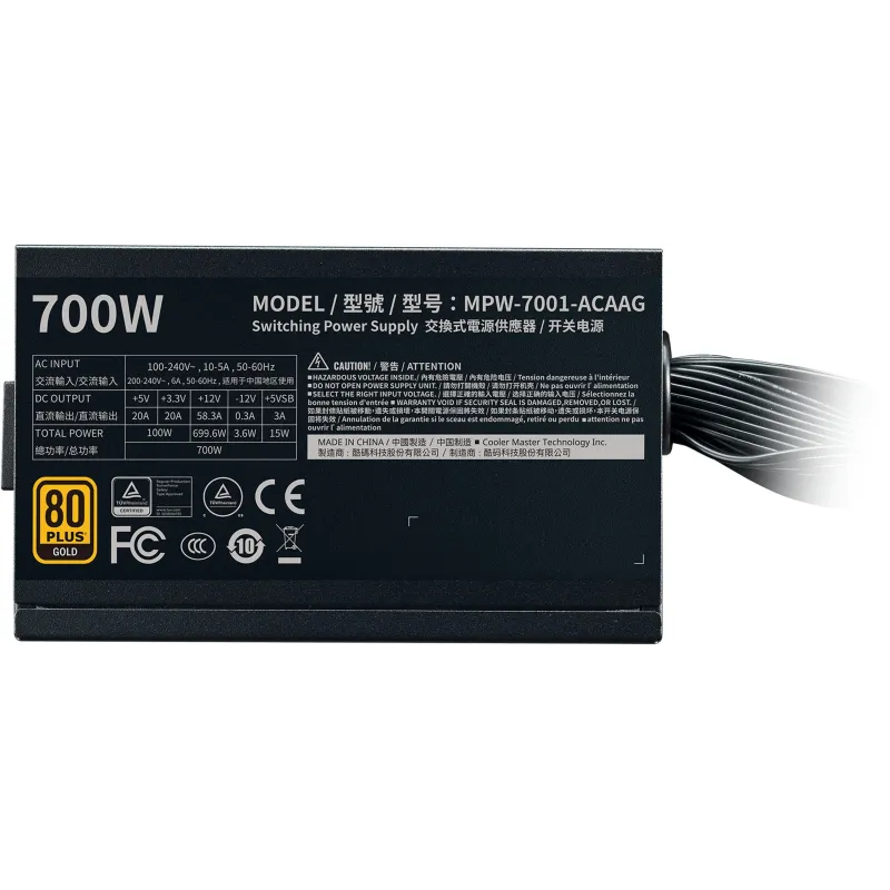 Con una potencia total de 700 W y un voltaje de entrada AC de 100 - 240 V, esta fuente de alimentación es ideal para PC y servidores. Su eficiencia del 90% y la certificación 80 PLUS Gold aseguran un rendimiento energético superior, mientras que el factor de corrección del poder activo (PFC) optimiza la estabilidad eléctrica.